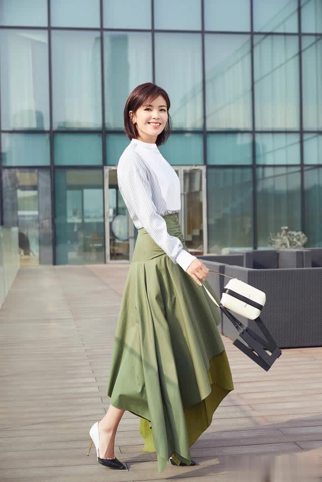 除了裤子的高腰设计,选择收腰或高腰款型的裙装,同样能凸显腰身比例。40 岁的女性应少穿超短裙,过膝长度的高腰裙更能彰显极致优雅感。半身高腰裙可搭配衬衫或针织衫,一深一浅的色系搭配尽显品位。