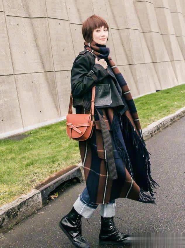 若穿有厚度的呢子大衣,可借鉴袁泉的搭配方式。内搭选择相近色系的薄款针织衫叠穿,在颜色上实现良好融合。薄款针织衫与厚重的呢子外套相衬,不会显胖。下身搭配长筒裤或半身裙,能大幅提升造型的优雅感。